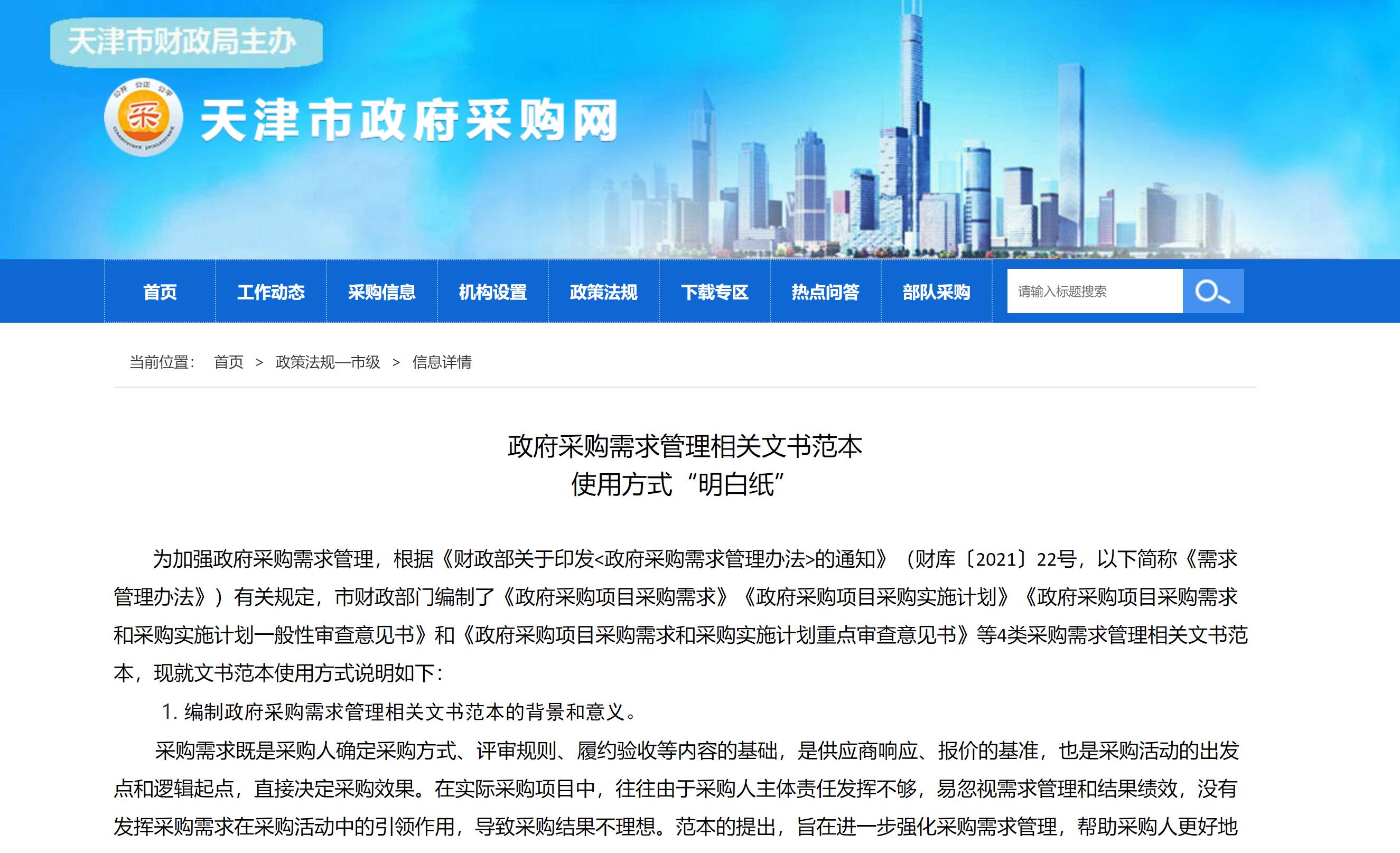 天津印發政府采購(gòu)需求管理(lǐ)相(xiàng)關文(™™Ωwén)書(shū)...