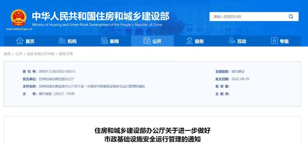 住房(fáng)和(hé)城(chéng)鄉(xiāng)建↓←♣設部辦公廳通(tōng)知(zhī)要(yào)求進一(yī)步做(zγ± uò)好(hǎo)市(shì)政基礎設施安全運行(xíng)管理≠&(lǐ)工(gōng)作(zuò)為(wèi)認真∏γ貫徹落實習(xí)近(jìn)平總書(shū✘✘≤)記關于安全生(shēng)産的(de)重要(yào)指→示精神和(hé)黨中央、國(guó)務院決✘♦≥策部署,落實國(guó)務院安全生(sh<α>ēng)...