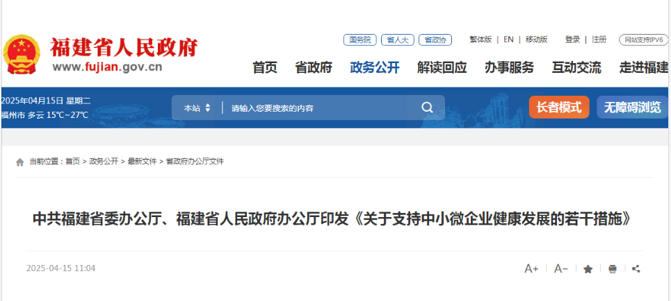 近(jìn)日(rì),中共福建省委辦公廳、÷¶福建省人(rén)民(mín)政府辦公廳印§®發《關于支持中小(xiǎo)微(wēi)企業(yè)健康發展的(de≤☆¥)若幹措施》,并發出通(tōng)知(zhī),要(yào)求各地(↕↕↔dì)各部門(mén)結合實際認真貫徹落實。《關于支持中小(xiǎo)微(w<β¶ēi)企業(yè)健康發...