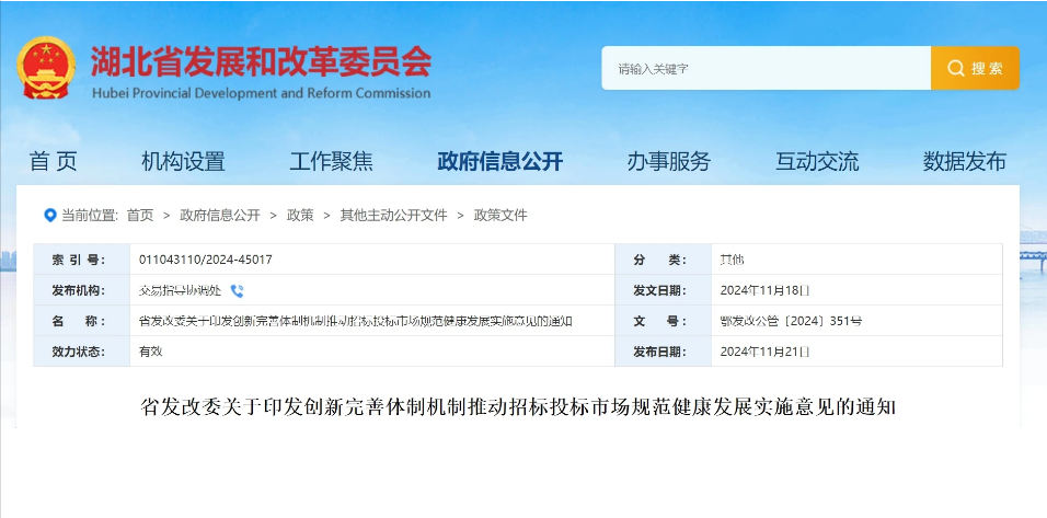近(jìn)日(rì),湖(hú)北(běi)省發改委印發《關于創γ≠新完善體(tǐ)制(zhì)機(jī)制(zhì)推動招标投标市(s×σhì)場(chǎng)規範健康發展的(d&'e)實施意見(jiàn)》(鄂發改公管〔2024〕号,以✔∞下(xià)簡稱《實施意見(jiàn)》),深化(hα&γ uà)招标投标領域改革創新重點任務和(hé)具體(tǐ)...