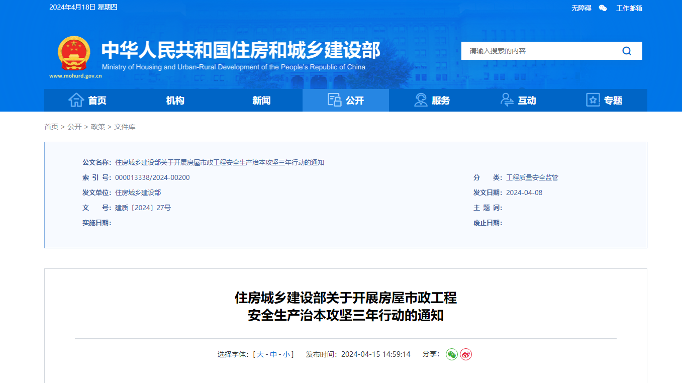 近(jìn)日(rì)★÷,住建部發布《關于開(kāi)展房(fáng)屋市(shì)政工(gō$>ng)程安全生(shēng)産治本攻堅三年(nián)行(xíng)動的(§$↔de)通(tōng)知(zhī)》。提出: &ldq±™→uo;逐企業(yè)、逐項目、逐設備&¶∑≈;rdquo;檢查在建房(fáng)屋市(shì)政工(gōng)程!<←Ω≥“逐企...