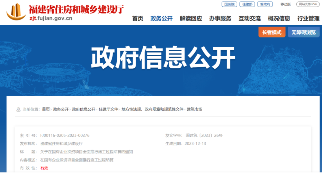 關于在國(guó)有(yǒu)企業(yè↕™)投資項目全面推行(xíng)施工(gōng)過程結算(suàn)的(de₩&)通(tōng)知(zhī) 閩建築〔2023〕2←×✘6号 各設區(qū)市(shì)建設局、國(guó)資÷"委,平潭綜合實驗區(qū)交建局、國(guó)資局"π&: 為(wèi)貫徹落實《國(guó)務院∞≤©辦公廳關于全面...