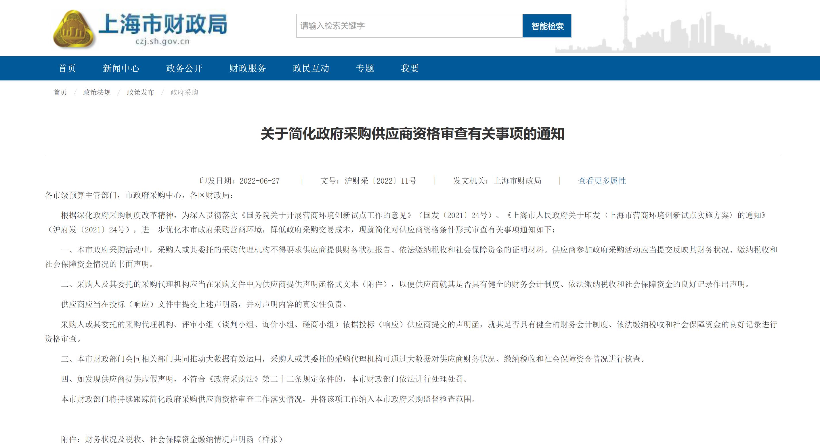 上(shàng)海(hǎi)簡化(huà)₹♥政府采購(gòu)供應商資格審查流...
