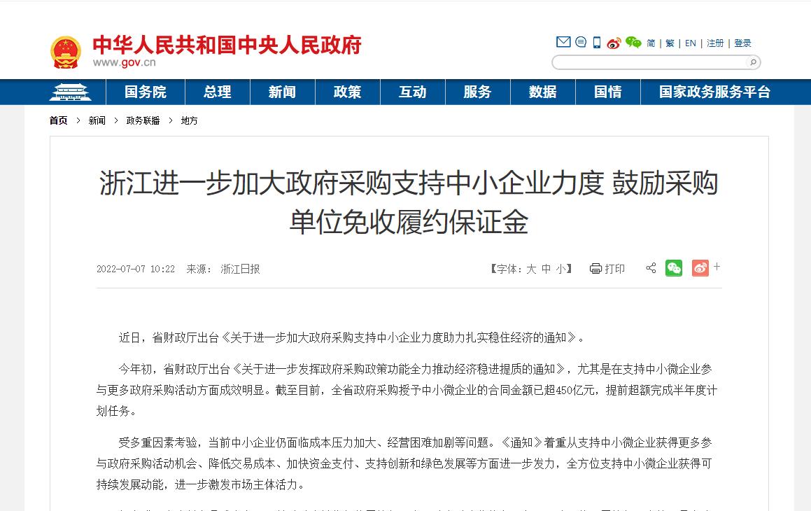 浙江丨進一(yī)步加大(dà)政府采購(gòu)支持中小ש∑α(xiǎo)...