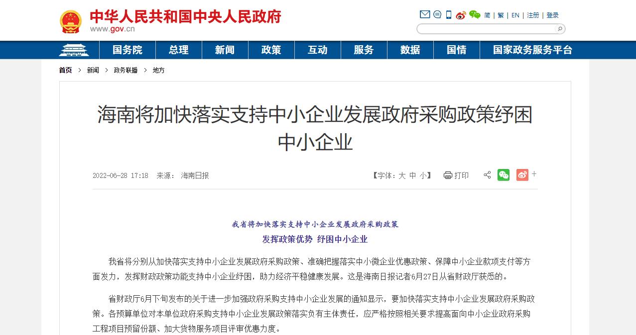 海(hǎi)南(nán)丨将加快(kuài)φ¶α落實支持中小(xiǎo)企業(yè)發展...