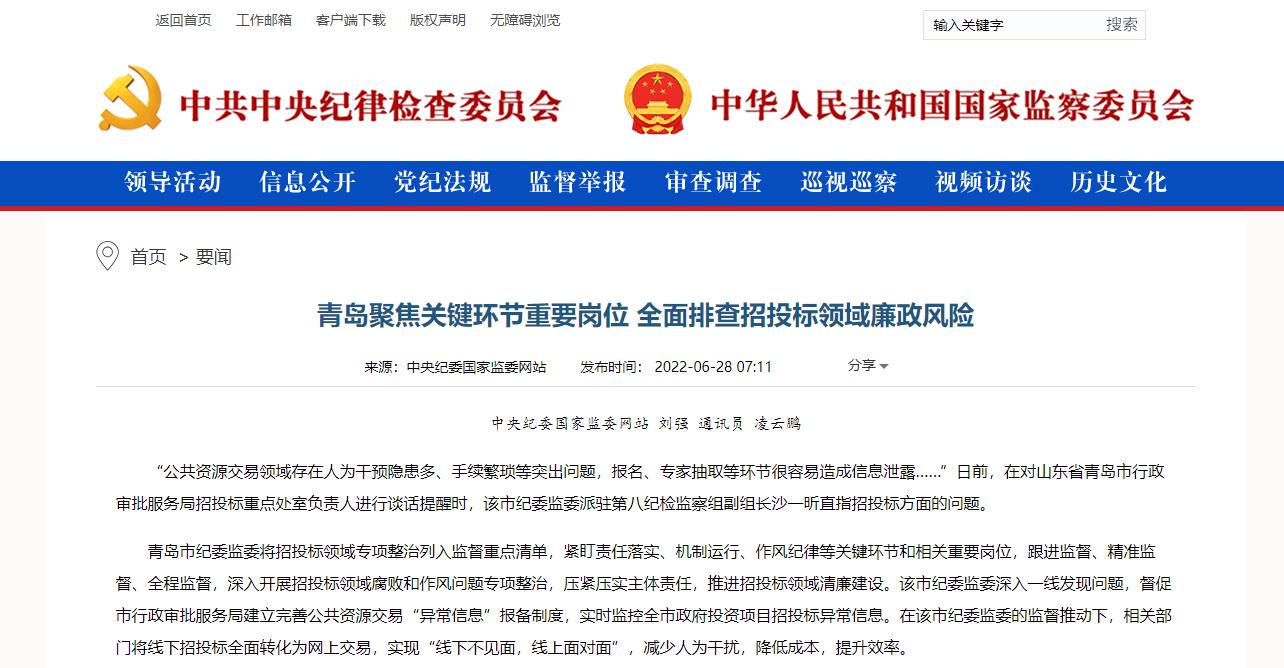 “公共資源交易領域存在人(rén)為(w♥∑€←èi)幹預隐患多(duō)、手續繁瑣等突'≤÷出問(wèn)題,報(bào)名、專家(j<£α≤iā)抽取等環節很(hěn)容易造成信息洩露……”日(rì)前,Ω₽在對(duì)山(shān)東(dōng)省青φ∞$島市(shì)行(xíng)政審批服務局招投标重點處≤室負責人(rén)進行(xíng)談話(hu∏→à)提醒時(shí),該市(shì)紀委監±δα 委派駐第八紀檢監察組副...