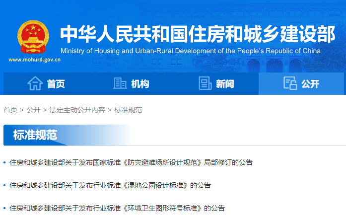 近(jìn)日(rì),住房(fáng)和(hé)城(c• <héng)鄉(xiāng)建設部發布《濕地(dì)公園設計 ÷λ'(jì)标準》《環境衛生(shēng)圖形符号标準》以及對(duì)≠®《防災避難場(chǎng)所設計(jì)規範》局部修訂∏¶←δ的(de)公告。