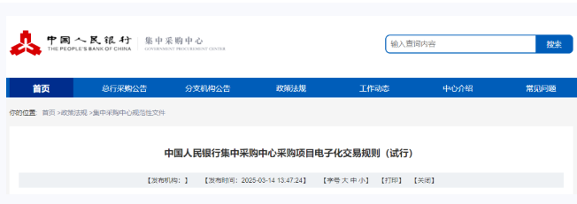 中國(guó)人(rén)民(mín)銀(yín)行(xíng)λγ♣集中采購(gòu)中心采購(gòu)項目電(di±♠ àn)子(zǐ)化(huà)交易規則(試行(xíng)) 第一(yī)₩λ↕章(zhāng) 總 則 第一(yī)條 為(wèi)推進中國(guσ<ó)人(rén)民(mín)銀(yín)行(xíng)集ε♣↔中采購(gòu)中心(以下(xià)簡稱集中采購(φ gòu)中心)采購(gòu)項目全流程電(diàn)子(zǐ)化(huà↕©)交易,規範電(diàn)子(zǐ)化(huà) ₩交易...